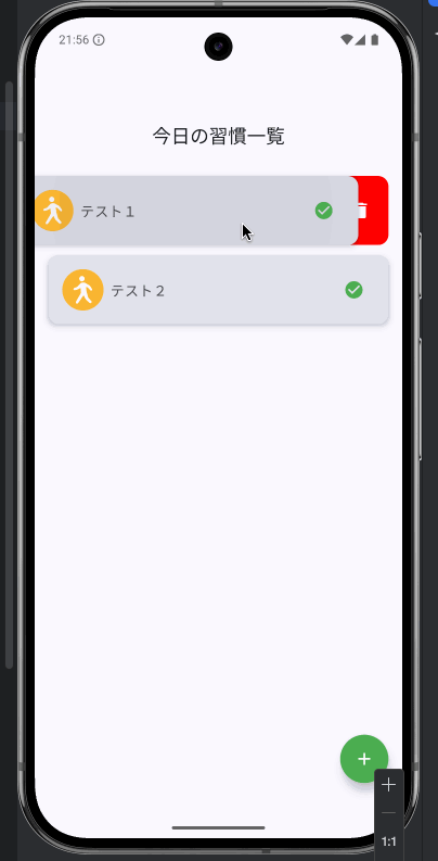 SwipeToDeleteHabitCard を導入し、iOSやAndroid でよく見られる「スワイプして削除」の操作に対応しています。